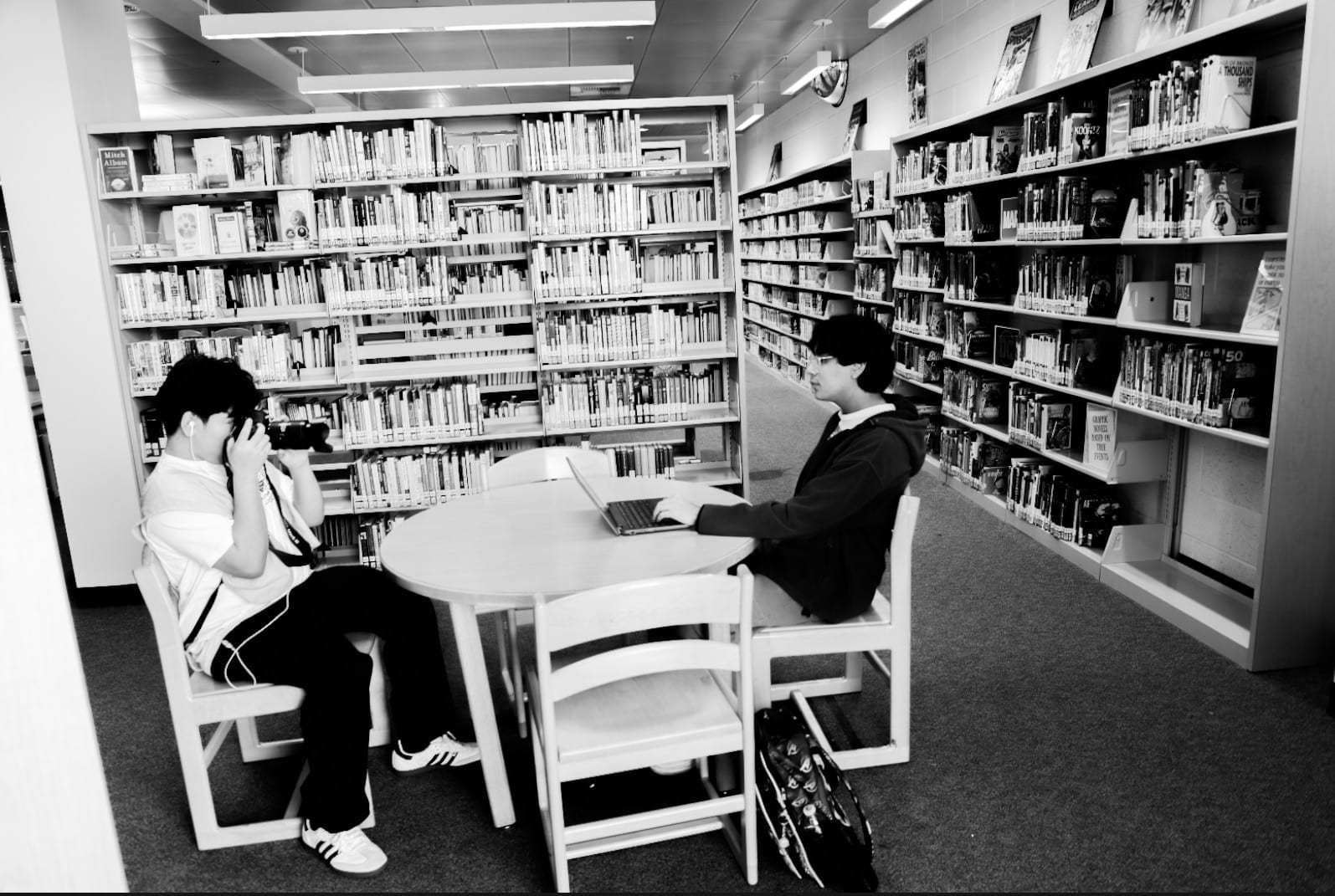 - A student taking a photo of a random student who is being studious and mysterious in the library